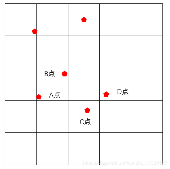 ENMTools工具可以自动匹配分析所用的环境因子栅格大小,可以删除同一栅格内的冗余数据,而不是基于距离法来删除数据。此方法快捷高效,分析结果更合理,英文期刊多用该方法。通过该方法可以删除下图中的A点或B点(同一栅格内),而C点和D点虽然直线距离小于缓冲区范围,但是不会被勿删。